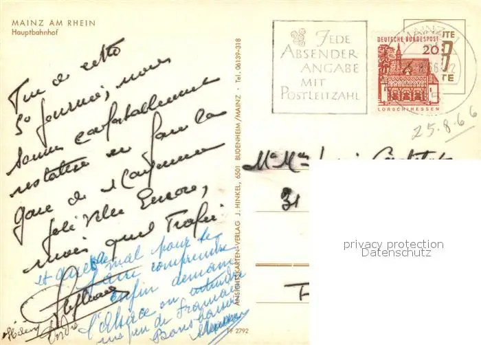Mainz_Rhein Hauptbahnhof Mainz Rhein postalisch gelaufen 1966 Erhaltung siehe scans [WerneD78] WernPID7