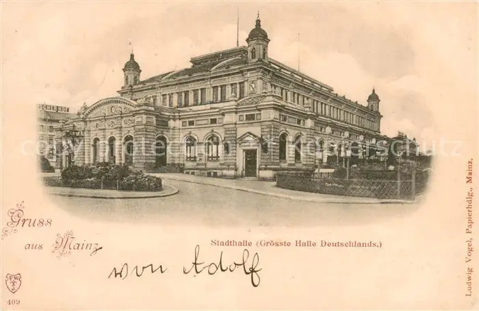 Mainz_Rhein Stadthalle Mainz Rhein postalisch gelaufen 1897 Erhaltung siehe scans [WerneD78] WernPID7