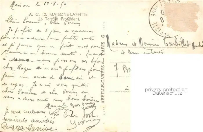 Maisons-Laffitte Temple Protestant Maisons-Laffitte postalisch gelaufen 1950 Erhaltung siehe scans [KathaD81] Kathoren