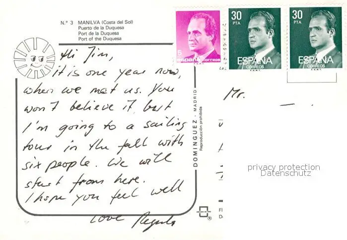 Manilva Kategorie Alte Ansichtskarten Postkarten kp45003 Manilva Puerto de la Duquesa Partie am Hafen Segelboote postalisch nicht gelaufen nach 1965 Erhaltung siehe scans [FriedD77]