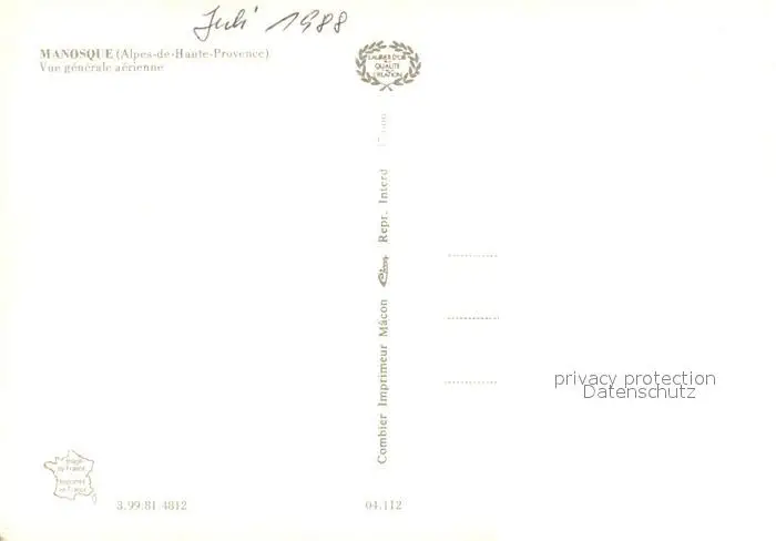 Manosque Vue aérienne Manosque postalisch nicht gelaufen 1988 Erhaltung siehe scans [FriedD77] Frierer