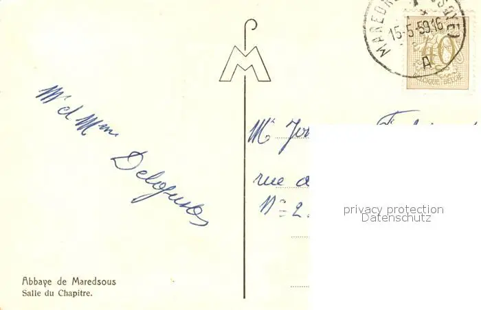 Maredsous Abbaye Salle du Chapitre Maredsous postalisch gelaufen 1959 Erhaltung siehe scans [WerneD78] WernPID7