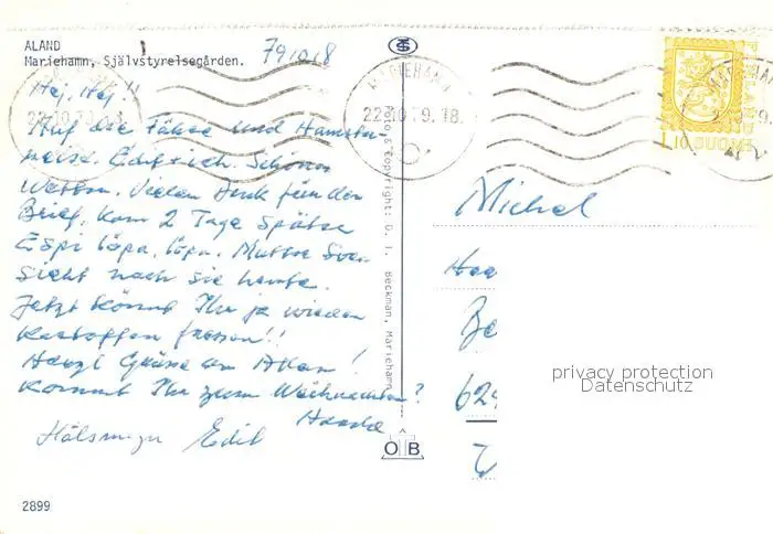 Mariehamn Sjaelvstyrelsegarden Mariehamn postalisch gelaufen 1979 Erhaltung siehe scans [FriedD77] Frierer