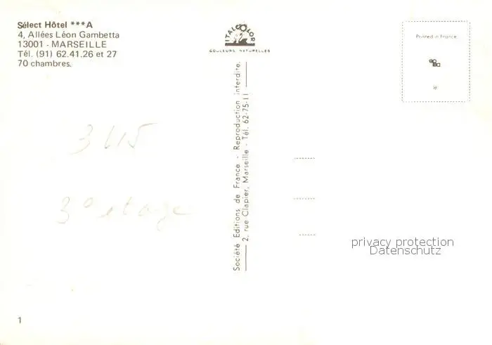 Marseille_13 Select Hotel postalisch nicht gelaufen nach 1965 Erhaltung siehe scans [WerneD78] WernPID7