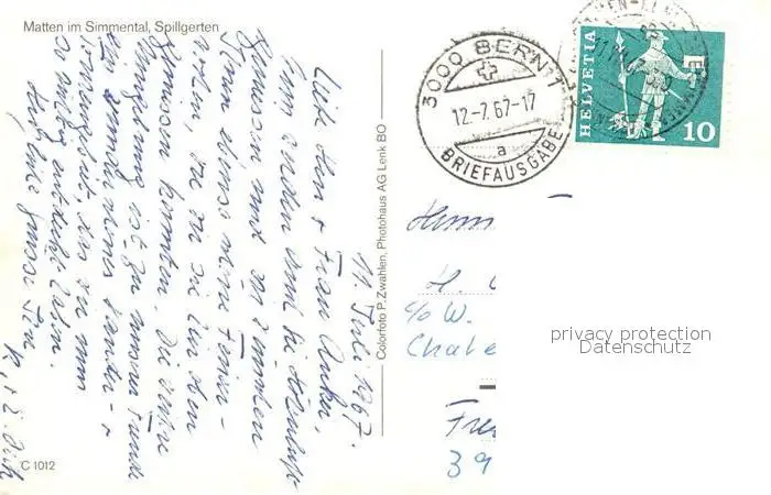 Matten_Simmental Spillgerten Matten Simmental postalisch gelaufen 1967 Erhaltung siehe scans [NatalD47] NataID47