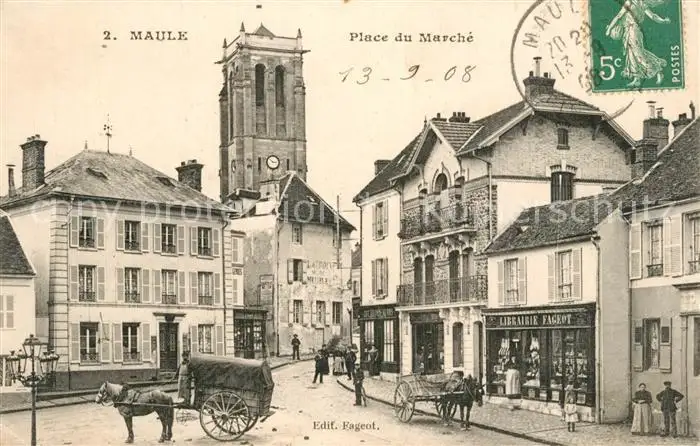 Maule Place du March Maule postalisch gelaufen 1908 Erhaltung siehe scans [LiesaD40] LiesID40