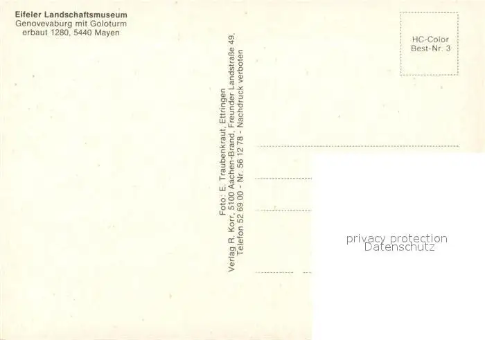 Mayen Landschaftsmuseum Goloturm Genoveaburg Mayen postalisch nicht gelaufen nach 1965 Erhaltung siehe scans [KathaD81] Kathoren