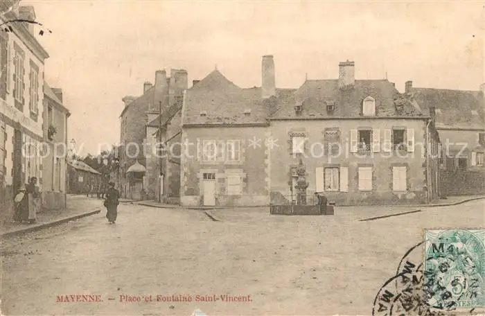 Mayenne Place et Fontaine Saint Vincent Mayenne postalisch gelaufen 1906 Erhaltung siehe scans [FriedD77] Frierer