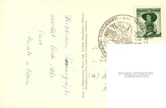 Mayrhofen_Zillertal mit Gruenberg Mayrhofen_Zillertal postalisch gelaufen 1956 Erhaltung siehe scans [WerneD78] WernPID7