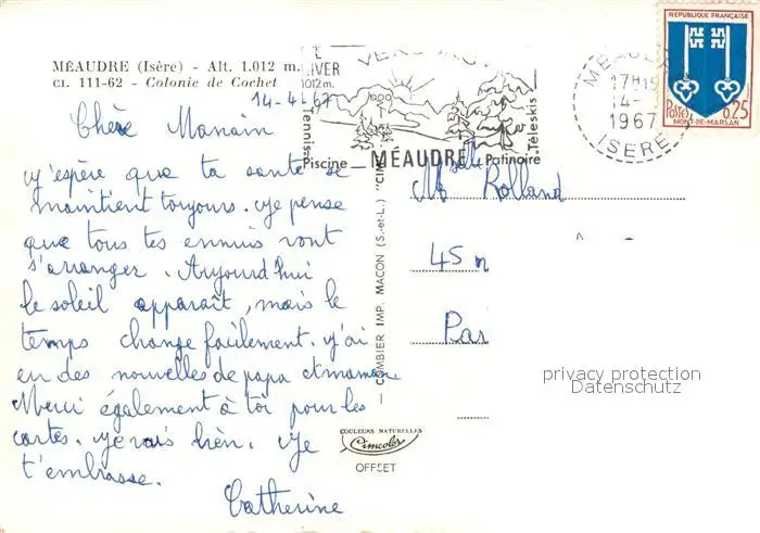 Meaudre Colonie de Cochet Meaudre postalisch gelaufen 1967 Erhaltung siehe scans [KathaD81] Kathoren