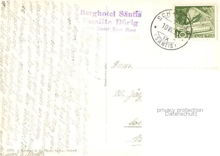 Meglisalp_1520m_Altmann_AR und Saentis postalisch gelaufen 1959 Erhaltung siehe scans [WerneD78] WernPID7