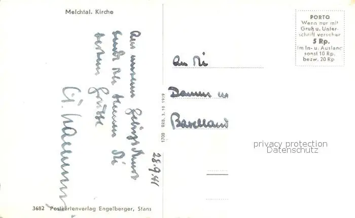 Melchtal Kirche Melchtal postalisch nicht gelaufen 1941 Erhaltung siehe scans [FriedD77] Frierer