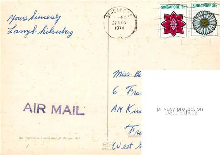 Mengwi Taman Ajun Tempel postalisch gelaufen 1974 Erhaltung siehe scans [WerneD78] WernPID7