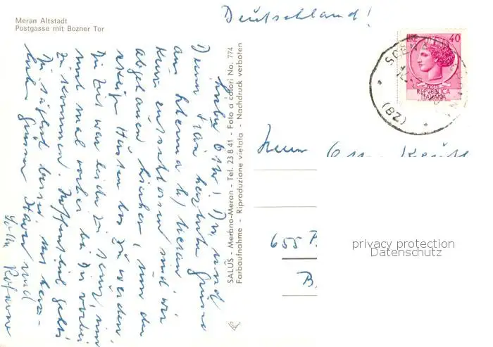 Meran_Merano Altstadt Postgasse mit Bozner Tor Meran Merano postalisch gelaufen 1970 Erhaltung siehe scans [FriedD77] Frierer