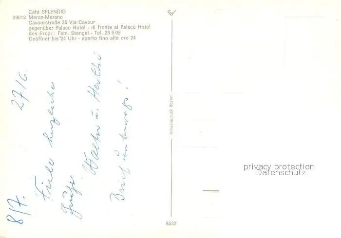 Meran_Merano Cafe Splendid Meran Merano postalisch nicht gelaufen nach 1965 Erhaltung siehe scans [WerneD78] WernPID7
