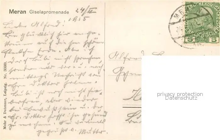 Meran_Merano Giselapromenade Meran Merano postalisch gelaufen 1915 Erhaltung siehe scans [FriedD77] Frierer