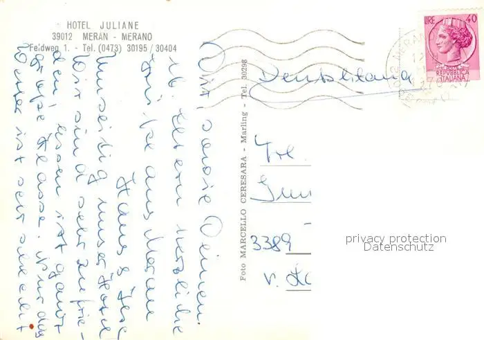 Meran_Merano Hotel Juliane Swimming Pool Meran Merano postalisch gelaufen 1970 Erhaltung siehe scans [FriedD77] Frierer