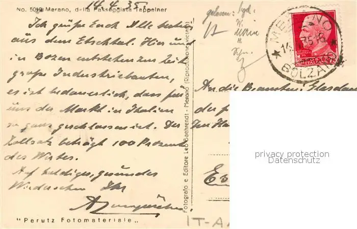 Meran_Merano Passeggiata Tappeiner Meran Merano postalisch gelaufen 1935 Erhaltung siehe scans [KathaD81] Kathoren