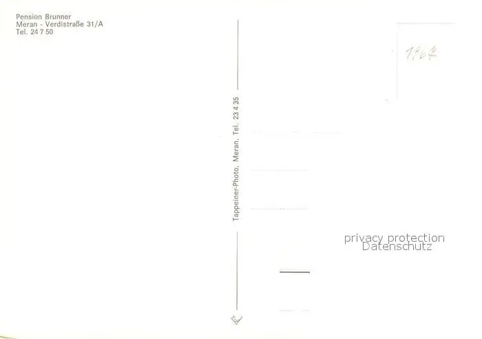 Meran_Merano Pension Brunner Meran Merano postalisch nicht gelaufen nach 1965 Erhaltung siehe scans [WerneD78] WernPID7