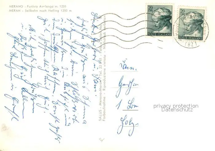 Merano_Meran Panorama mit Seilbahn nach Hafling postalisch gelaufen nach 1965 Erhaltung siehe scans [WerneD78] WernPID7