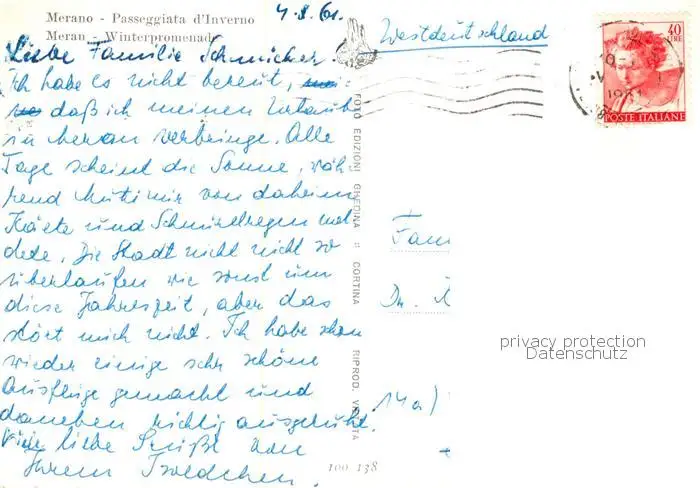 Merano_Meran_IT Passeggiata d'Inverno postalisch gelaufen 1961 Erhaltung siehe scans [WerneD78] WernPID7