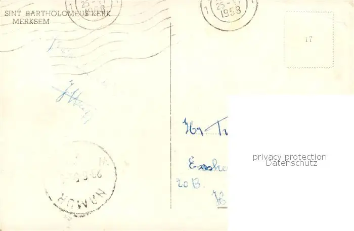 Merksem Sint Bartholomeus Kerk Merksem postalisch gelaufen 1958 Erhaltung siehe scans [KathaD81] Kathoren