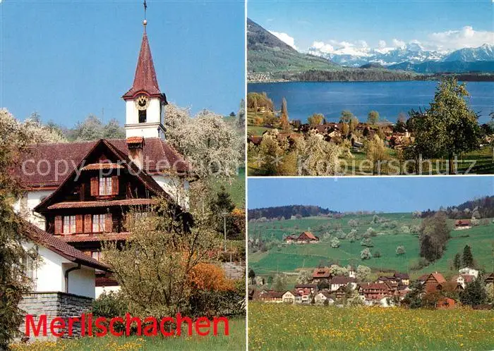 AK / Ansichtskarte Merlischachen Kirche Vierwaldstaettersee Panorama Merlischachen