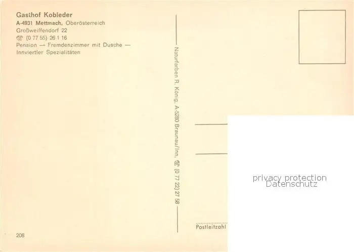 Mettmach Gasthof Kobleder Mettmach postalisch nicht gelaufen nach 1965 Erhaltung siehe scans [PaolaD17] PaolPID1