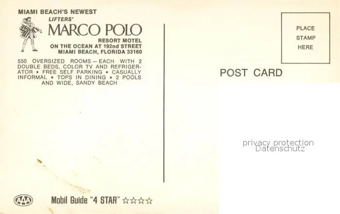 Miami_Beach Marco Polo Resort Motel Atlantic Ocean postalisch nicht gelaufen nach 1965 Erhaltung siehe scans [FriedD77] Frierer