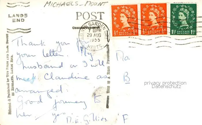 Michaels_Mount_Cornwall_UK Panorama postalisch gelaufen 1955 Erhaltung siehe scans [FriedD77] Frierer