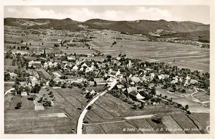 Miecourt_JU Vue prise par avion postalisch gelaufen 1921-1965 Fliegeraufnahme Erhaltung siehe scans [FriedD77] Fliegeraufnahme Frierer
