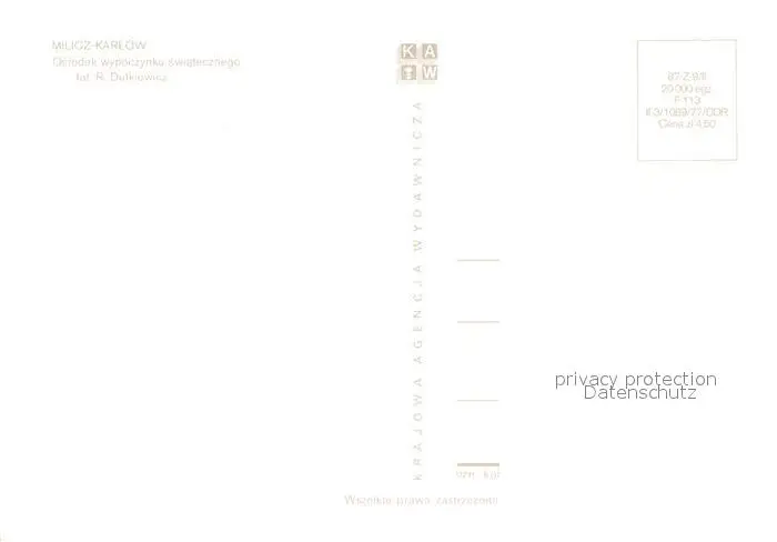 Milicz Osrodek wypoczynku swiatecznego Milicz postalisch nicht gelaufen nach 1965 Erhaltung siehe scans [PaolaD17] PaolPID1