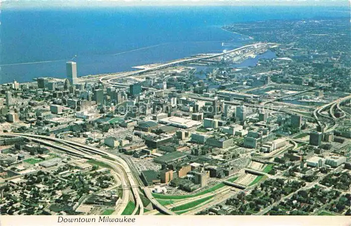 AK / Ansichtskarte Milwaukee Wisconsin USA Aerial view of the heart of downtown First Wisconsin Center Lake Michigan