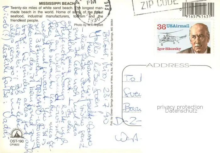 Mississippi_US-State Beach Air view Mississippi_US-State postalisch gelaufen 1990 Erhaltung siehe scans [WerneD78] WernPID7