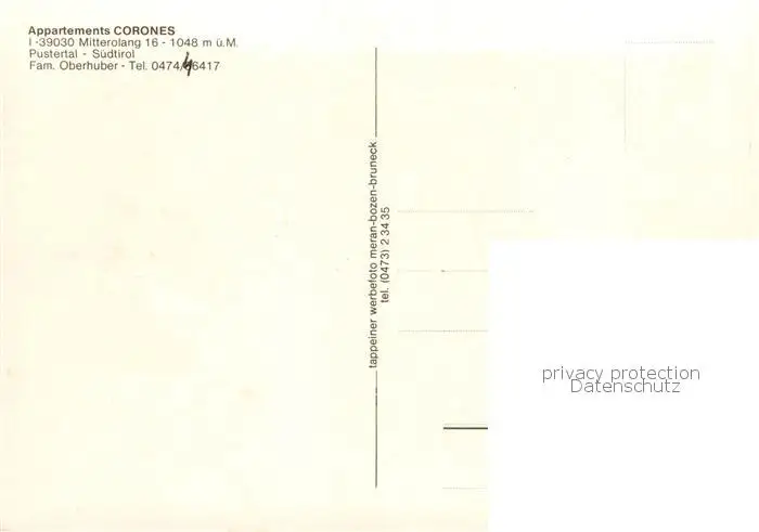 Mitterolang Appartements Corones Brunnen Mitterolang postalisch nicht gelaufen nach 1965 Erhaltung siehe scans [FriedD77] Frierer