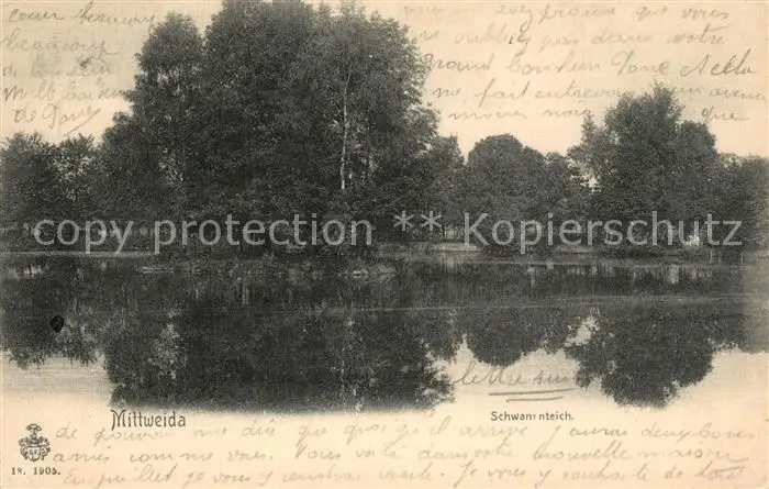 Mittweida Schwanenteich Mittweida postalisch gelaufen 1908 Erhaltung siehe scans [LiesaD40] LiesID40