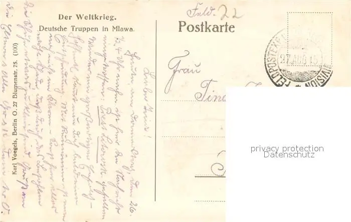 Mlawa_Mielau_Ostpreussen Deutsche Truppen postalisch gelaufen 1915 Feldpostexpedition (Stempel) Erhaltung siehe scans [WerneD78] Feldpostexpedition (Stempel) WernPID7