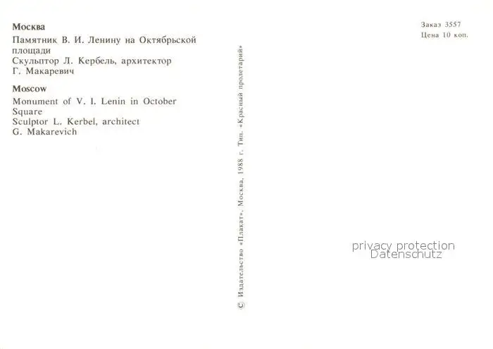 Mockba Monument Lenin October Square Mockba postalisch nicht gelaufen nach 1965 Erhaltung siehe scans [KathaD81] Kathoren