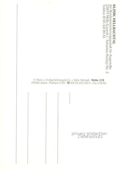 Moelln_Lauenburg Klinik Hellbachtal Moelln_Lauenburg postalisch nicht gelaufen nach 1965 Erhaltung siehe scans [LiesaD40] LiesID40
