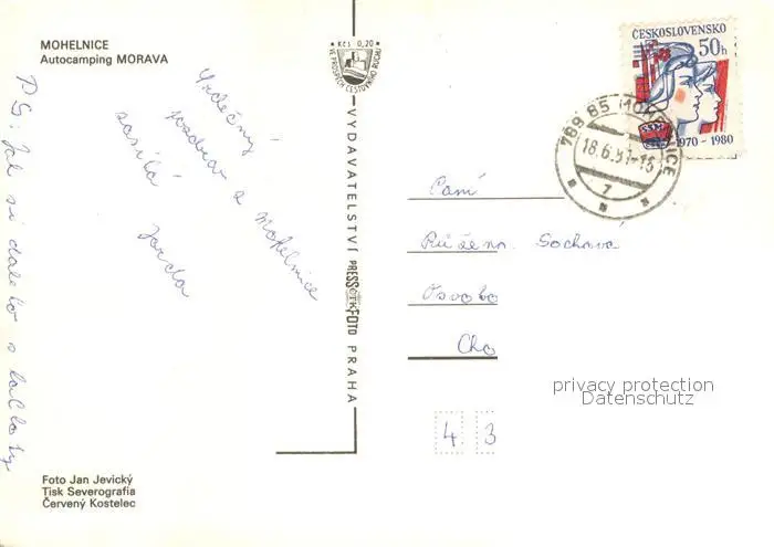 Mohelnice Autocamping Morava Lagerfreuer Mohelnice postalisch gelaufen 1987 Erhaltung siehe scans [KathaD81] Kathoren