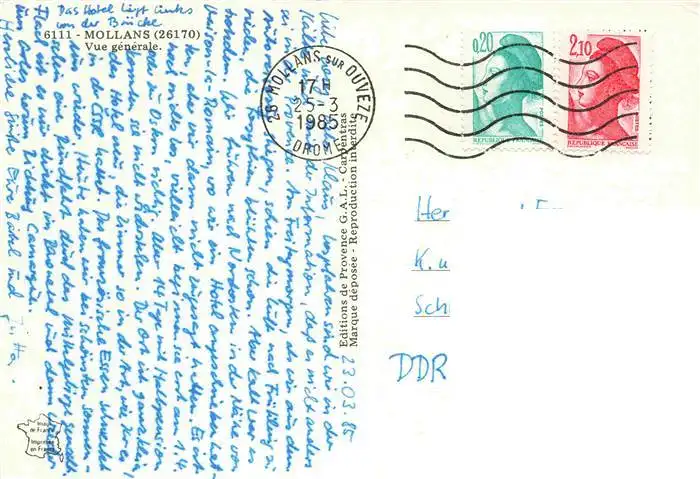 Mollans Vue générale aerienne Mollans postalisch gelaufen 1985 Erhaltung siehe scans [WerneD78] WernPID7