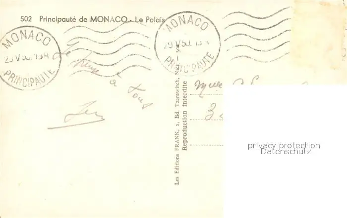 Monaco Le Palais Monaco postalisch gelaufen 1950 Erhaltung siehe scans [WerneD78] WernPID7