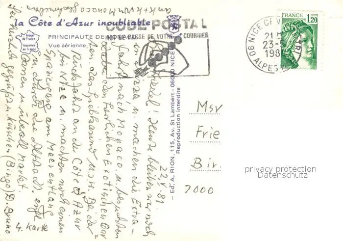 Monaco Vue aérienne de la Principauté Côte d'Azur Monaco postalisch gelaufen 1981 Erhaltung siehe scans [FriedD77] Frierer