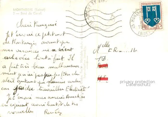 Montargis_Loiret Bord du Canal Montargis Loiret postalisch gelaufen 1967 Erhaltung siehe scans [FriedD77] Frierer