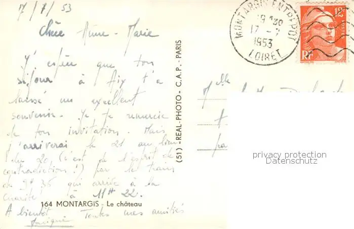 Montargis_Loiret Château Schloss Montargis Loiret postalisch gelaufen 1953 Erhaltung siehe scans [FriedD77] Frierer