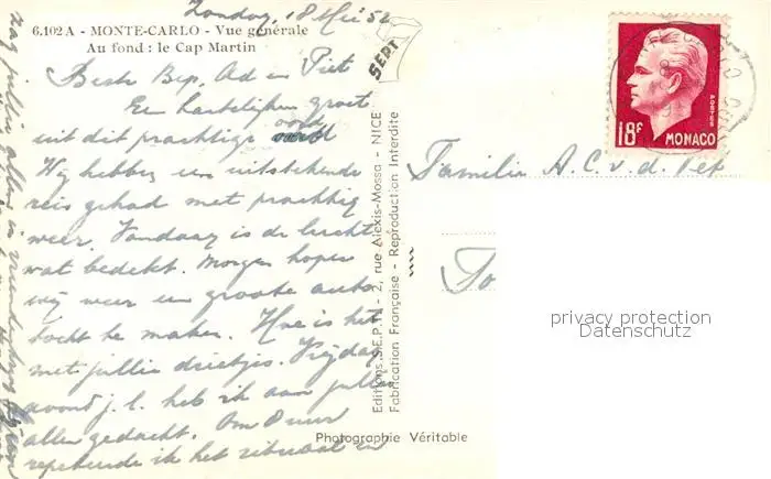 Monte-Carlo Le Cap Martin Monte-Carlo postalisch gelaufen 1952 Erhaltung siehe scans [WerneD78] WernPID7