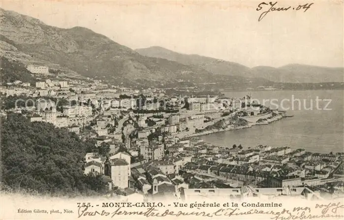 Monte-Carlo Vue générale et la Condamine Côte d'Azur Monte-Carlo postalisch gelaufen 1904 Erhaltung siehe scans [FriedD77] Frierer