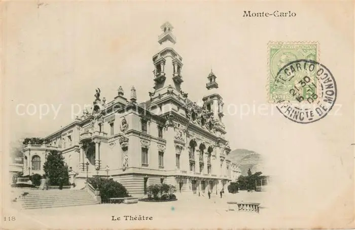 Monte-Carlo_Monaco Le Théâtre postalisch gelaufen 1905 Erhaltung siehe scans [FriedD77] Frierer