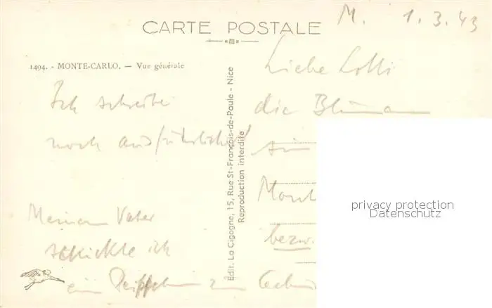 Monte-Carlo_Monaco Vue generale postalisch gelaufen 1943 Erhaltung siehe scans [WerneD78] WernPID7