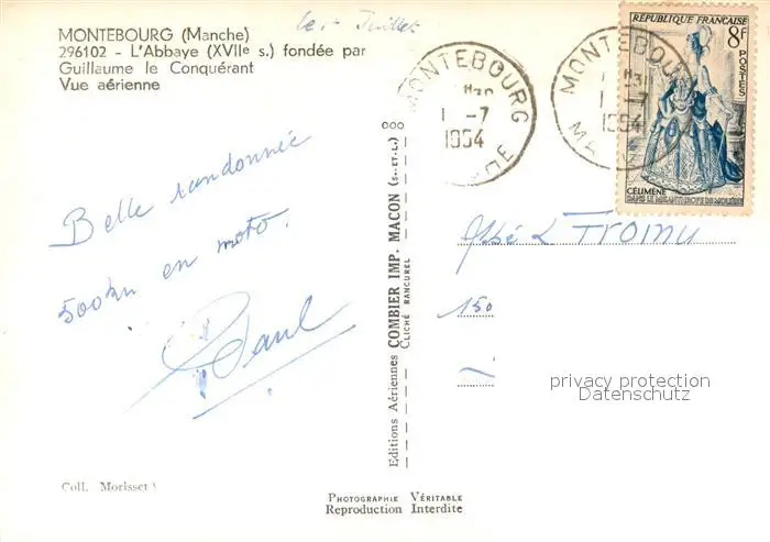 Montebourg Abbaye Vue Aerienne Montebourg postalisch gelaufen 1954 Erhaltung siehe scans [PaolaD17] PaolPID1